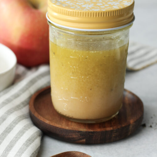 Store any leftover apple cider vinaigrette in an airtight container or mason jar with a secure lid and keep it in the refrigerator for up to one week.