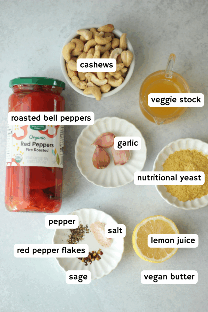 Jar of roasted bell peppers: Using jarred roasted red peppers makes this recipe quick and effortless. They bring a smoky sweetness that creates the base of this creamy vegan sauce without the need to roast fresh peppers.