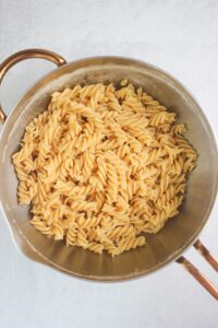 Pasta: Grab a box of your pasta of choice because this part is about you. Shells, rigatoni, lentil-based, or gluten-free pasta. It’s up to you.