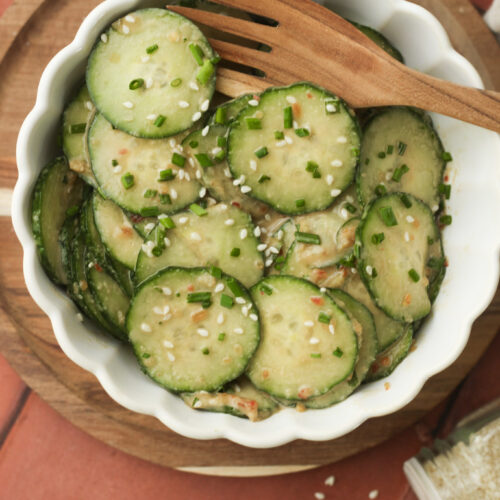 This refreshing cucumber salad pairs well with Asian-inspired dishes like fried rice, spring rolls, veggie dumplings, or noodle bowls. It also makes a light and flavorful side for any meal.